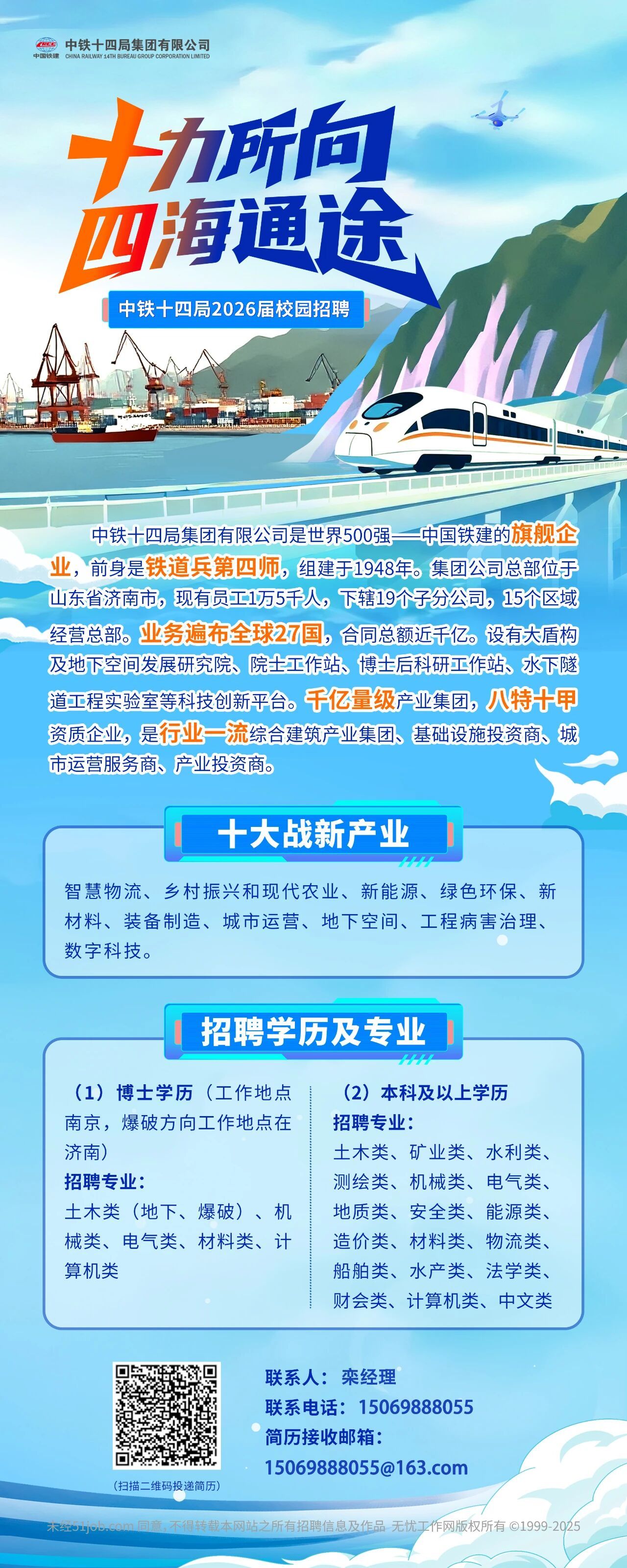 「招聘公告」中铁十四局集团有限公司2026届校园招聘